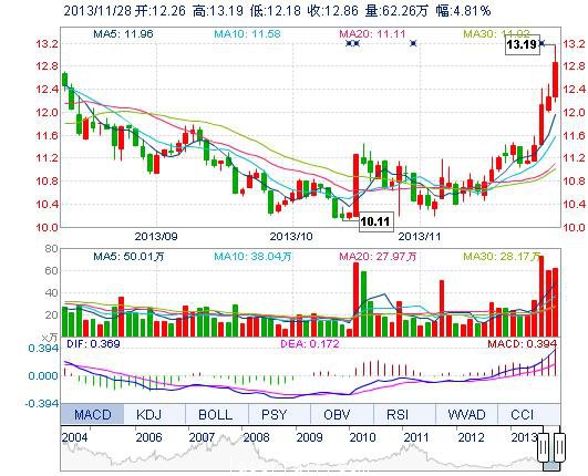 | 最 高: | 13.19 | 成交額: | 8.01億元 | 換手率: | 6.58% |