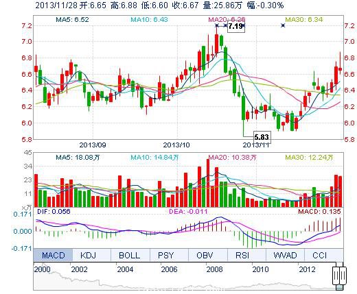 | 今 開: | 6.65 | 成交量: | 25.86萬手 | 振 幅: | 4.19% |