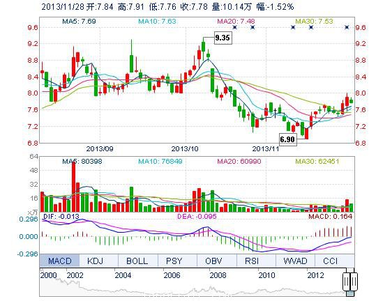 | 今 開: | 7.84 | 成交量: | 10.14萬手 | 振 幅: | 1.90% |
