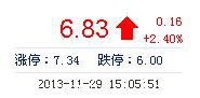 今開: 6.76 成交量: 32.50萬(wan) 手 振幅: 2.85% 最高: 6.92 成交額: 2.22億(yi) 元 換手率: 3.65% 最低: 6.73 總市值: 60.86億(yi) 市淨率: 2.26 昨收: 6.67 流通市值: 60...