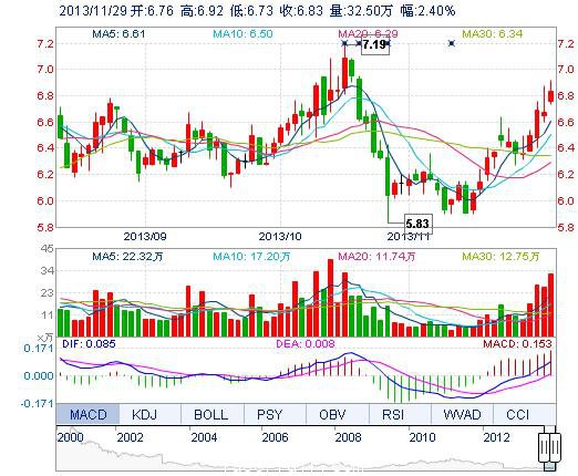 | 今 開: | 6.76 | 成交量: | 32.50萬手 | 振 幅: | 2.85% |