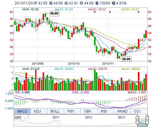 今開: 42.60 成交量: 7.50萬(wan) 手 振幅: 5.80% 最高: 44.88 成交額: 3.31億(yi) 元 換手率: 2.61% 最低: 42.41 總市值: 132.99億(yi) 市淨率: 8.76 昨收: 42.62 流通市值...