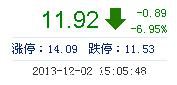 今開: 12.60 成交量: 54.14萬(wan) 手 振幅: 7.73% 最高: 12.65 成交額: 6.60億(yi) 元 換手率: 5.73% 最低: 11.66 總市值: 124.49億(yi) 市淨率: 3.56 昨收: 12.81 流通市值...