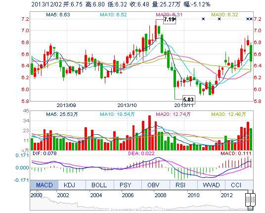 今開: 6.75 成交量: 25.27萬(wan) 手 振幅: 7.03% 最高: 6.80 成交額: 1.66億(yi) 元 換手率: 2.84% 最低: 6.32 總市值: 57.74億(yi) 市淨率: 2.14 昨收: 6.83 流通市值: 57...