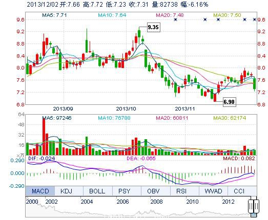今開: 7.66 成交量: 8.27萬(wan) 手 振幅: 6.29% 最高: 7.72 成交額: 6181.16萬(wan) 元 換手率: 1.89% 最低: 7.23 總市值: 31.93億(yi) 市淨率: 2.34 昨收: 7.79 流通市值: ...