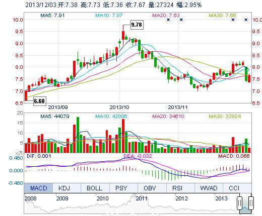 | 今 開: | 7.38 | 成交量: | 2.73萬手 | 振 幅: | 4.97% |