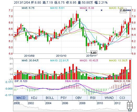 | 今 開: | 6.80 | 成交量: | 50.88萬手 | 振 幅: | 6.47% |