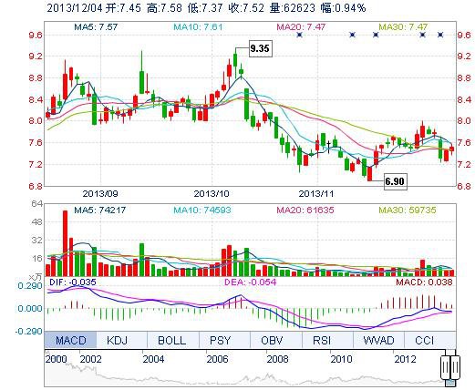 | 今 開: | 7.45 | 成交量: | 6.26萬手 | 振 幅: | 2.82% |