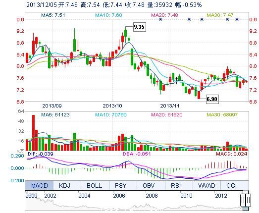 今開: 7.46 成交量: 3.59萬(wan) 手 振幅: 1.33% 最高: 7.54 成交額: 2690.37萬(wan) 元 換手率: 0.82% 最低: 7.44 總市值: 32.67億(yi) 市淨率: 2.39 昨收: 7.52 流通市值: ...