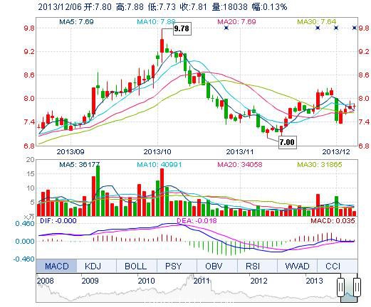 | 今 開: | 7.80 | 成交量: | 1.80萬手 | 振 幅: | 1.92% |