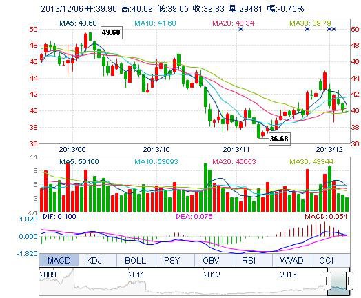 今開: 39.90 成交量: 2.95萬(wan) 手 振幅: 2.59% 最高: 40.69 成交額: 1.18億(yi) 元 換手率: 1.03% 最低: 39.65 總市值: 118.56億(yi) 市淨率: 7.81 昨收: 40.13 流通市值...