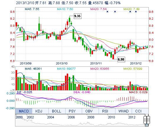 | 今 開: | 7.61 | 成交量: | 4.57萬手 | 振 幅: | 2.37% |