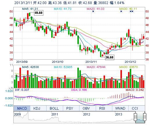 今開: 42.00 成交量: 3.68萬(wan) 手 振幅: 3.69% 最高: 43.36 成交額: 1.57億(yi) 元 換手率: 1.28% 最低: 41.81 總市值: 127.04億(yi) 市淨率: 8.37 昨收: 41.99 流通市值...