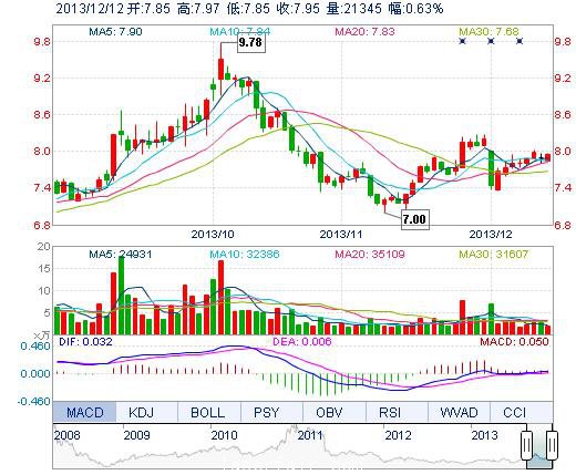 | 今 開: | 7.85 | 成交量: | 2.13萬手 | 振 幅: | 1.52% |