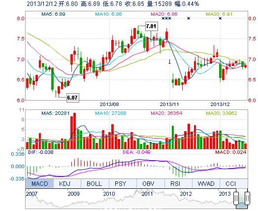 | 今 開: | 6.80 | 成交量: | 1.53萬手 | 振 幅: | 1.61% |