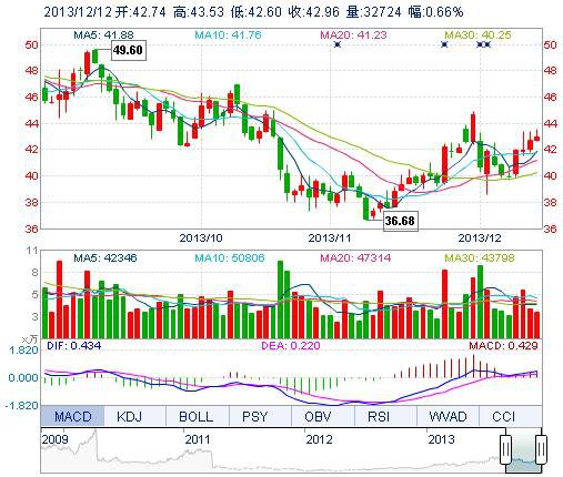 | 最 高: | 43.53 | 成交額: | 1.41億元 | 換手率: | 1.14% |