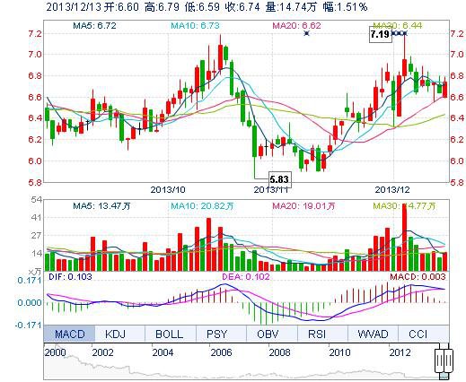 | 今 開: | 6.60 | 成交量: | 14.74萬手 | 振 幅: | 3.01% |