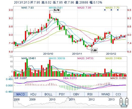 今開: 7.95 成交量: 2.07萬(wan) 手 振幅: 2.14% 最高: 8.02 成交額: 1644.95萬(wan) 元 換手率: 0.75% 最低: 7.85 總市值: 22.69億(yi) 市淨率: 3.64 昨收: 7.95 流通市值: ...