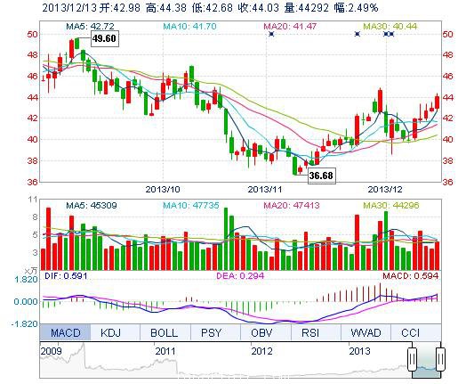 | 最 高: | 44.38 | 成交額: | 1.94億元 | 換手率: | 1.54% |