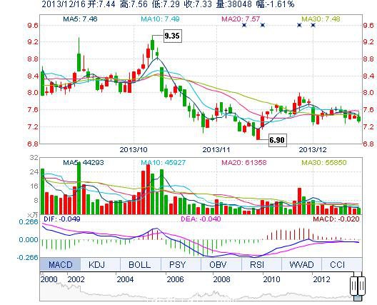 | 今 開: | 7.44 | 成交量: | 3.80萬手 | 振 幅: | 3.62% |