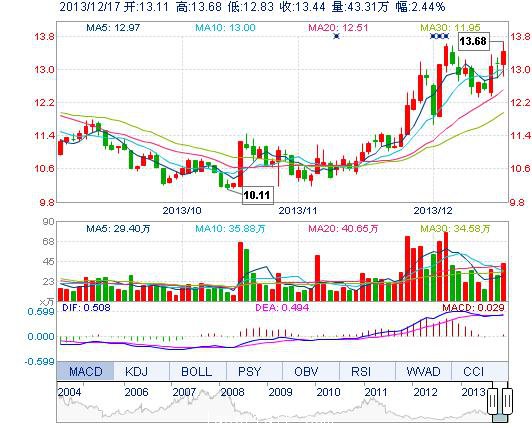| 最 高: | 13.68 | 成交額: | 5.79億元 | 換手率: | 4.58% |