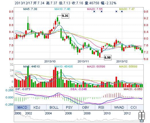 | 今 開: | 7.34 | 成交量: | 4.68萬手 | 振 幅: | 3.27% |