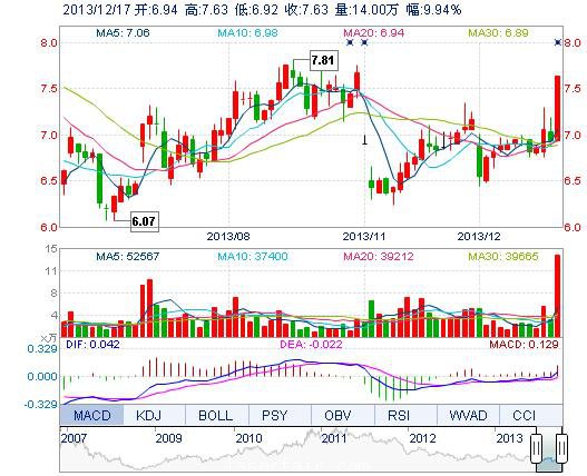 | 今 開: | 6.94 | 成交量: | 14.00萬手 | 振 幅: | 10.23% |