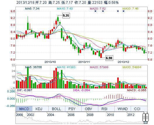 今開: 7.20 成交量: 2.21萬(wan) 手 振幅: 1.12% 最高: 7.25 成交額: 1591.92萬(wan) 元 換手率: 0.51% 最低: 7.17 總市值: 31.45億(yi) 市淨率: 2.30 昨收: 7.16 流通市值: ...