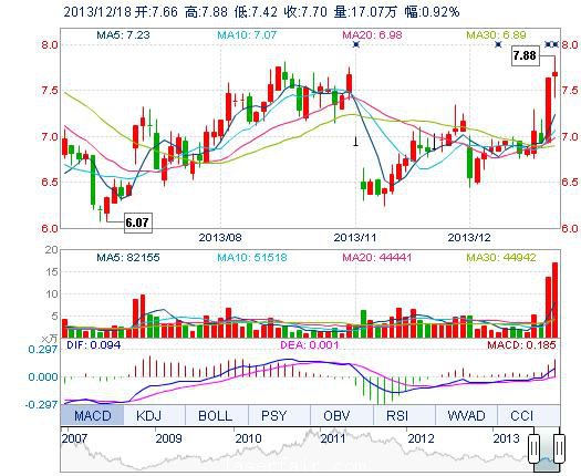 | 今 開: | 7.66 | 成交量: | 17.07萬手 | 振 幅: | 6.03% |
