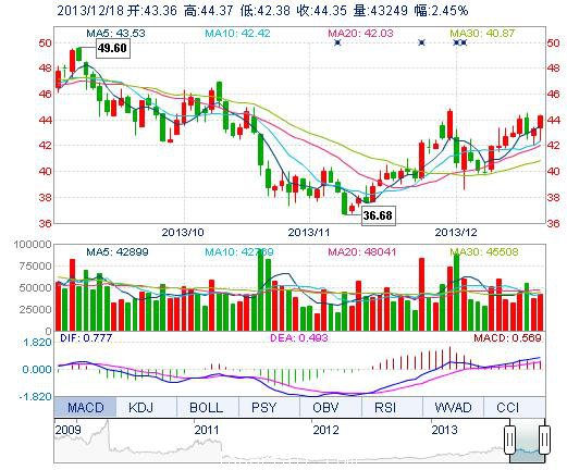 | 最 高: | 44.37 | 成交額: | 1.89億元 | 換手率: | 1.51% |
