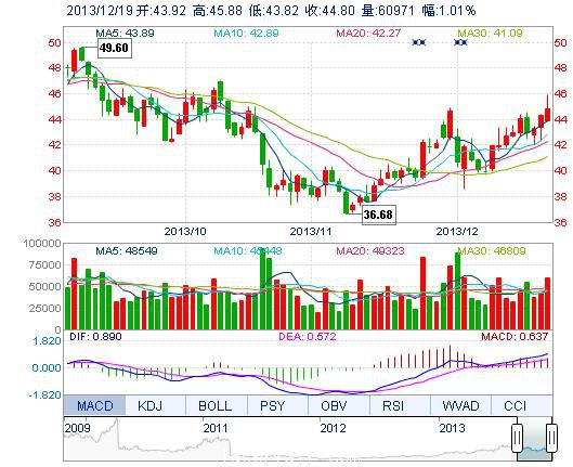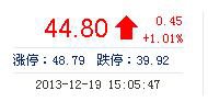 今開: 43.92 成交量: 6.10萬(wan) 手 振幅: 4.64% 最高: 45.88 成交額: 2.74億(yi) 元 換手率: 2.12% 最低: 43.82 總市值: 133.35億(yi) 市淨率: 8.78 昨收: 44.35 流通市值...