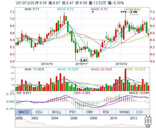 | 今 開: | 6.55 | 成交量: | 12.52萬手 | 振 幅: | 3.03% |