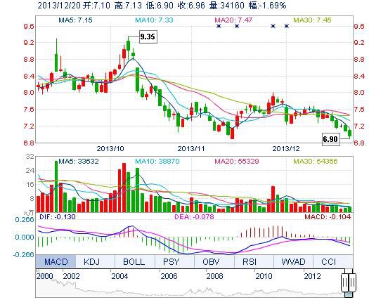 | 今 開: | 7.10 | 成交量: | 3.42萬手 | 振 幅: | 3.25% |