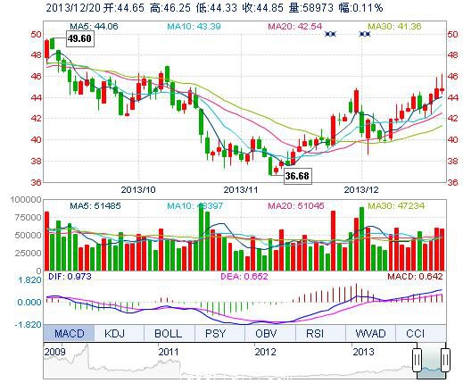 | 最 高: | 46.25 | 成交額: | 2.68億元 | 換手率: | 2.05% |