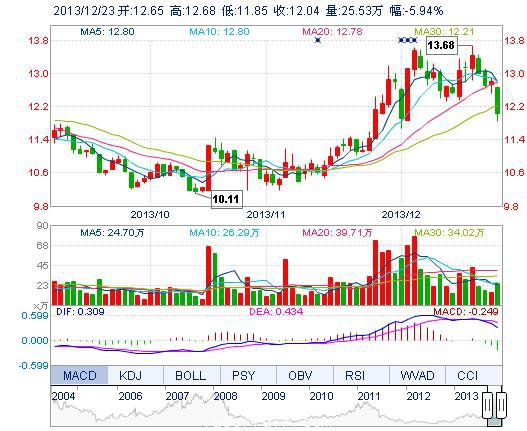 | 最 高: | 12.68 | 成交額: | 3.11億元 | 換手率: | 2.70% |