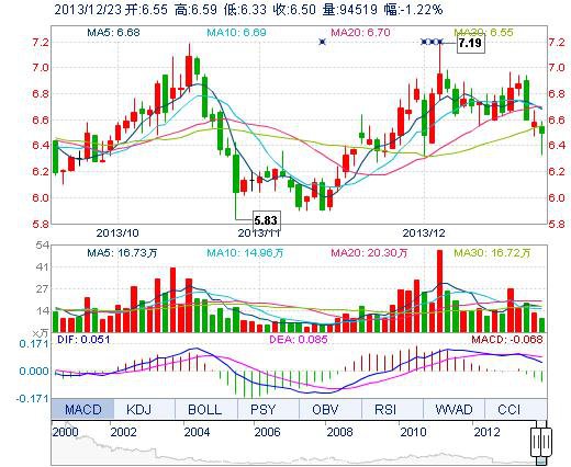 | 今 開: | 6.55 | 成交量: | 9.45萬手 | 振 幅: | 3.95% |