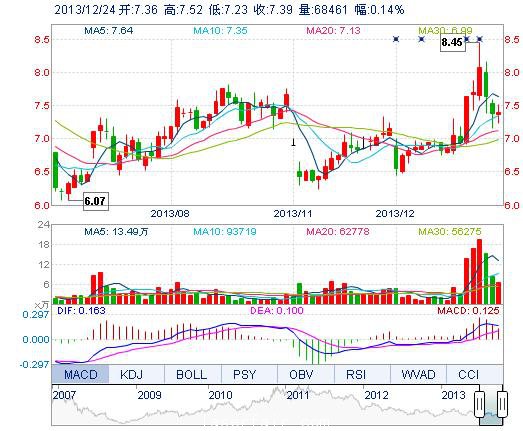 | 今 開: | 7.36 | 成交量: | 6.85萬手 | 振 幅: | 3.93% |