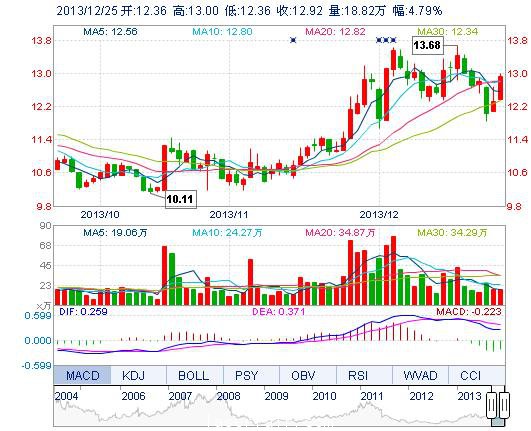 | 最 高: | 13.00 | 成交額: | 2.41億元 | 換手率: | 1.99% |