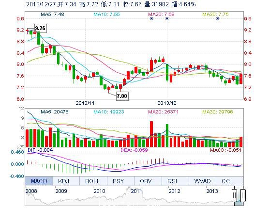 今開: 7.34 成交量: 3.20萬(wan) 手 振幅: 5.60% 最高: 7.72 成交額: 2416.68萬(wan) 元 換手率: 1.16% 最低: 7.31 總市值: 21.83億(yi) 市淨率: 3.50 昨收: 7.32 流通市值: ...