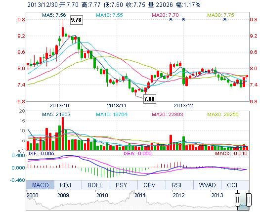 今開: 7.70 成交量: 2.20萬(wan) 手 振幅: 2.22% 最高: 7.77 成交額: 1696.93萬(wan) 元 換手率: 0.80% 最低: 7.60 總市值: 22.09億(yi) 市淨率: 3.54 昨收: 7.66 流通市值: ...