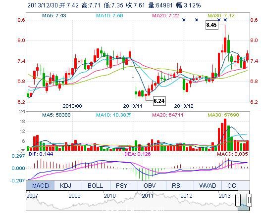 | 今 開: | 7.42 | 成交量: | 6.50萬手 | 振 幅: | 4.88% |