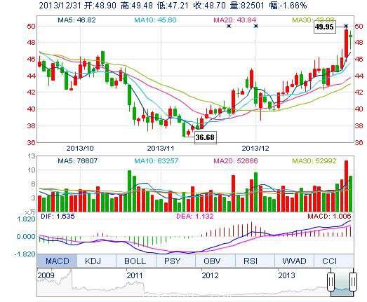 | 最 高: | 49.48 | 成交額: | 3.99億元 | 換手率: | 2.87% |