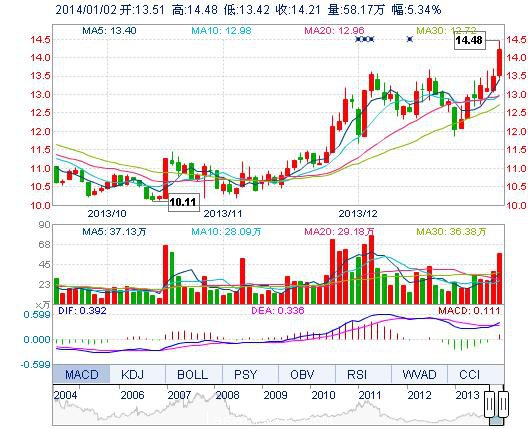 今開: 13.51 成交量: 58.17萬(wan) 手 振幅: 7.86% 最高: 14.48 成交額: 8.17億(yi) 元 換手率: 6.15% 最低: 13.42 總市值: 148.41億(yi) 市淨率: 4.25 昨收: 13.49 流通市值...