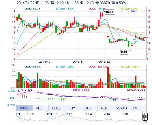 | 今 開: | 11.98 | 成交量: | 3.69萬手 | 振 幅: | 4.15% |