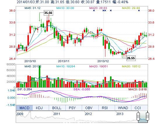 今開: 31.00 成交量: 1.75萬(wan) 手 振幅: 3.38% 最高: 31.65 成交額: 5481.03萬(wan) 元 換手率: 0.51% 最低: 30.60 總市值: 133.56億(yi) 市淨率: 8.23 昨收: 31.02 流通市...