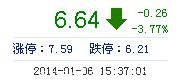 今開: 6.85 成交量: 20.26萬(wan) 手 振幅: 5.22% 最高: 6.95 成交額: 1.37億(yi) 元 換手率: 2.27% 最低: 6.59 總市值: 59.17億(yi) 市淨率: 2.19 昨收: 6.90 流通市值: 59...