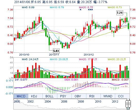 | 今 開: | 6.85 | 成交量: | 20.26萬手 | 振 幅: | 5.22% |