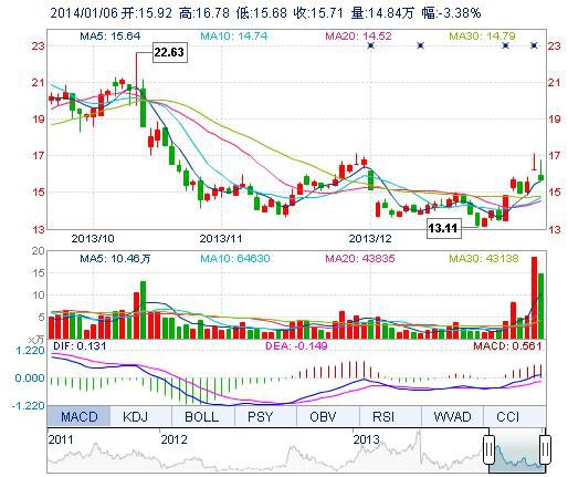 | 今 開: | 15.92 | 成交量: | 14.84萬手 | 振 幅: | 6.77% |