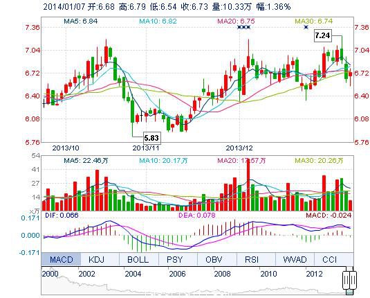 今開: 6.68 成交量: 10.33萬(wan) 手 振幅: 3.77% 最高: 6.79 成交額: 6890.83萬(wan) 元 換手率: 1.16% 最低: 6.54 總市值: 59.97億(yi) 市淨率: 2.22 昨收: 6.64 流通市值:...