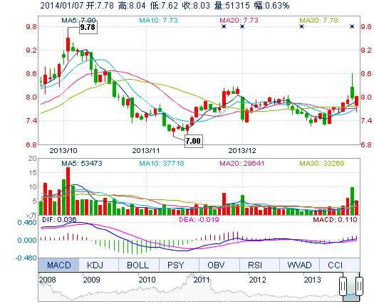 | 今 開: | 7.78 | 成交量: | 5.13萬手 | 振 幅: | 5.26% |